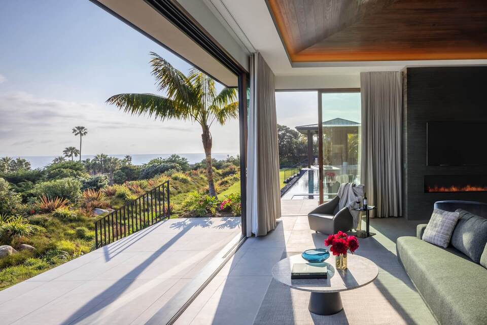 The line between indoors and outdoors dissolves in this home. With multiple outdoor living areas, Burdge wanted to ensure that the Malibu views and relaxing outdoor rooms would be usable even when the cooler winter months arrived. They also wanted to ensure that no combustion sources like traditional gas heaters were used in these areas, and that the views would not be obstructed by whatever heating source they chose.