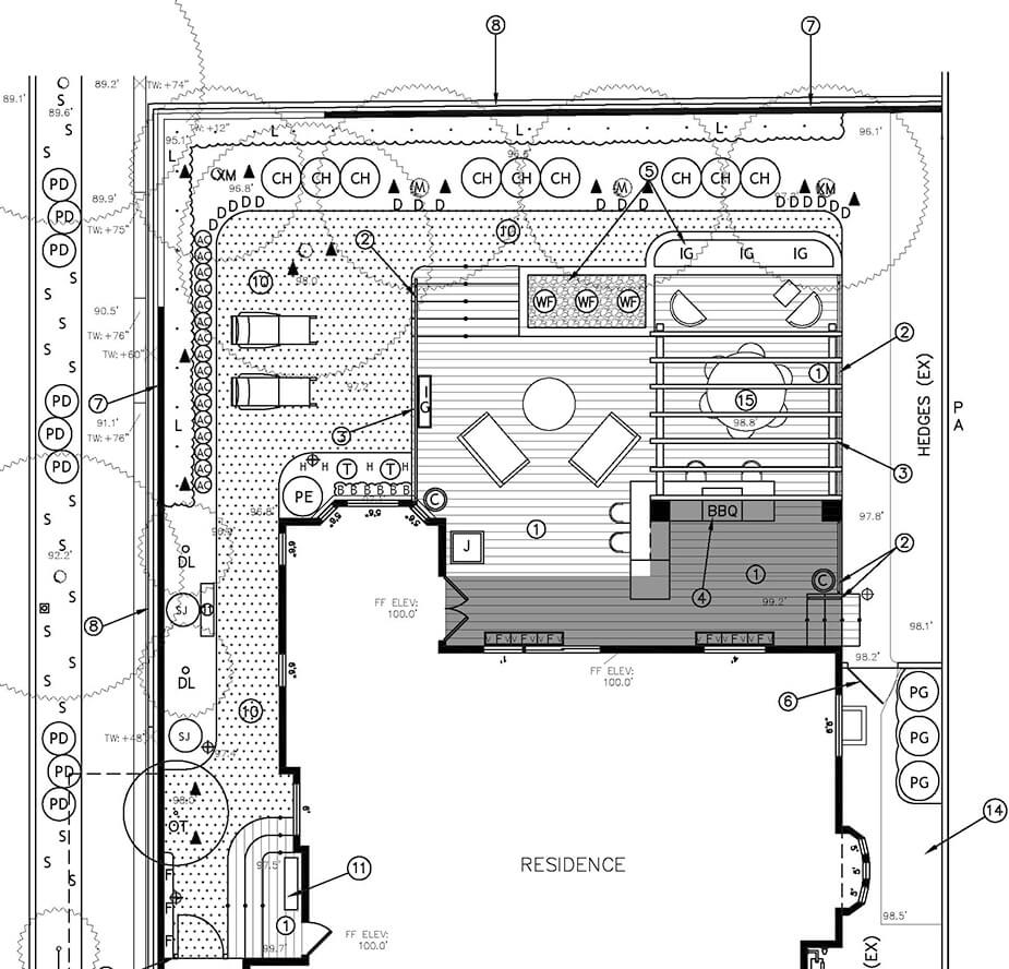 This design was developed to maximize use of the landscape for clients who enjoyed cooking and entertaining outside.