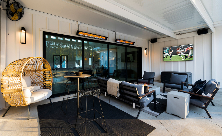 In their recent The Paxton project, that focus on innovation and better living was on display in the outdoor living area. The team ensured the homeowners could enjoy a comfortable, spacious, and appealing outdoor destination all year-round by pairing 2 Infratech CD-Series heaters with black Motif Collection Craftsman fascia and our 2-relay home management panel with a Nice smart home management system.