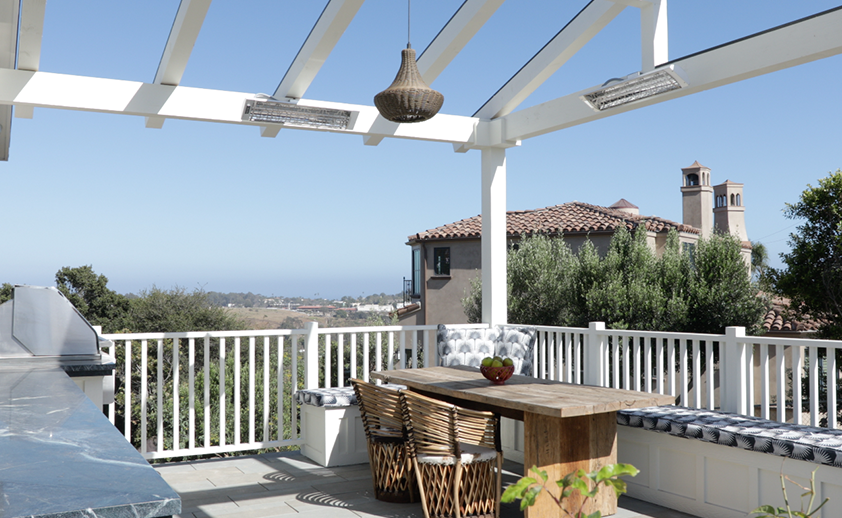 With a large outdoor living space to cover, Infratech heaters were the natural choice. We worked with Burdge’s President, Jennifer Hoppel and Director of Operations, Jeanette Tang to install two dual-element CD-Series fixtures in White, wall mounted to a custom-designed trellis that extends from the roof of the home. The subtle design and customizable color of the heaters means that they blend seamlessly with the design of the home, without ever having to sacrifice comfort or convenience.