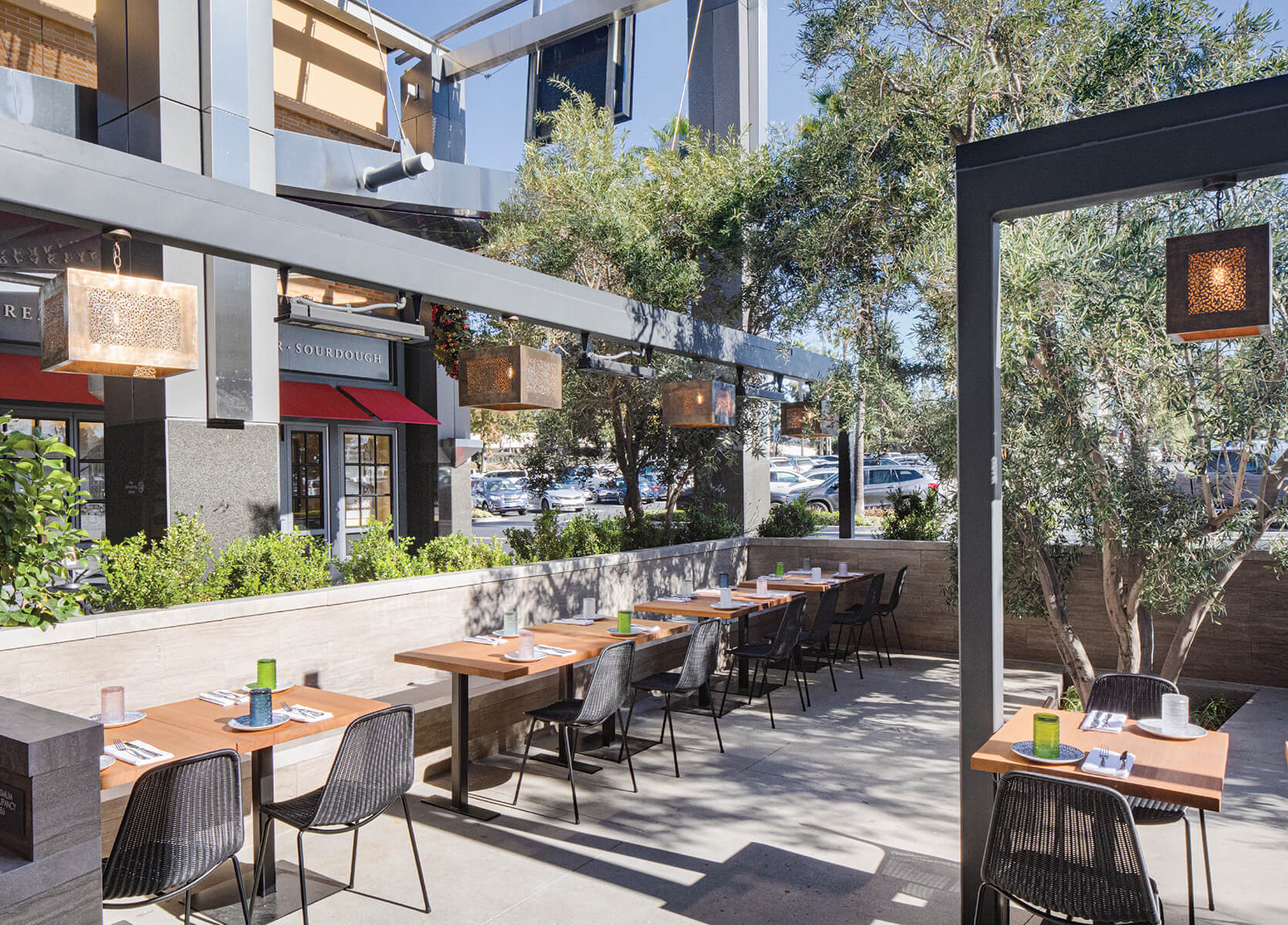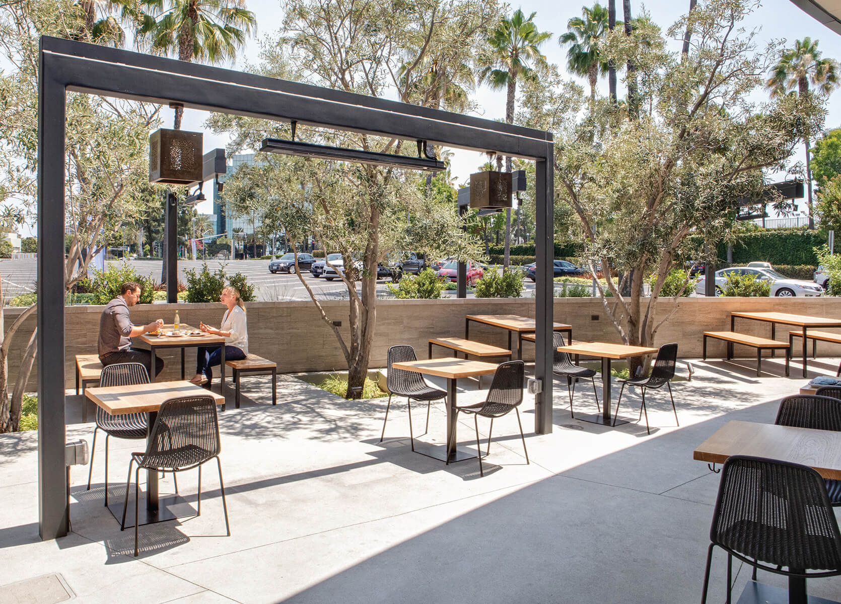 Lasater and his team enjoyed the opportunity to work with a diverse team of design-build professionals for this 8,000 square-foot project. The owners of the once-vacant property approached Lasater to help them realize their vision for a multi-use food concept. It would incorporate four different restaurants under one room, all united by the theme of the interior design and the notion of a Mediterranean marketplace. Lasater’s team began by identifying the sensory touchpoints of the space — what guests would see, smell, taste and touch. Comfort was a key driver in their design process and inspired the selection of Infratech heaters for the outdoor patio. By bringing ambient warmth into the space in a way that complemented the design, the heating system supported Lasater’s intention to create an outdoor space that invites guests to linger and savor their meals.