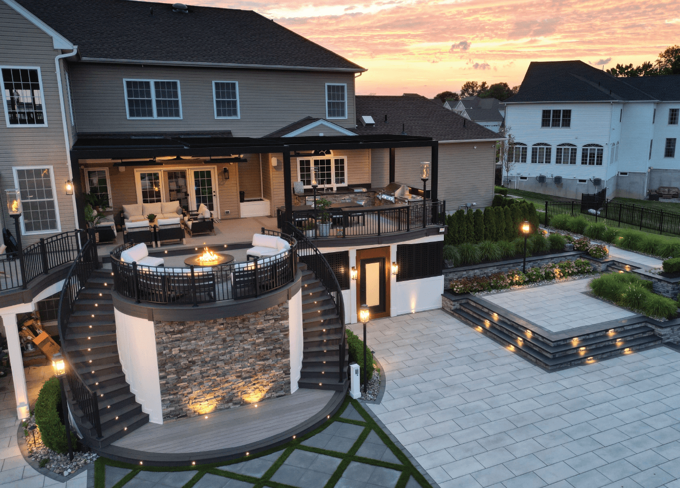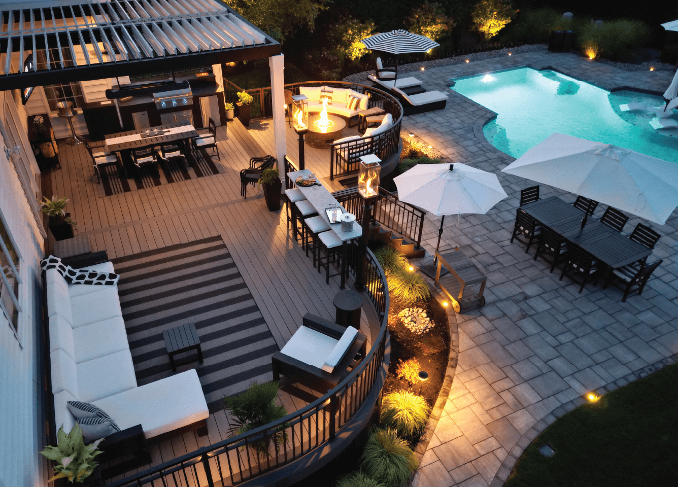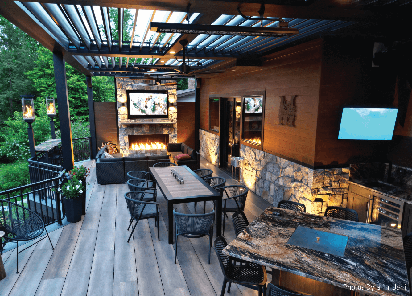 Deck Remodelers uses their expertise to help their clients envision and build the outdoor living spaces of their dreams. For the Modern Lake House Resort in Sparta, NJ, the team built an outdoor living destination with a kitchen, television lounge, bar area, outdoor fireplace and torches that contribute to a rustic yet upscale ambience. The space is kept warm year-round with six Infratech heaters so the owners can enjoy the serenity of the property’s natural setting and its contemporary outdoor conveniences even in the cooler fall and winter months.