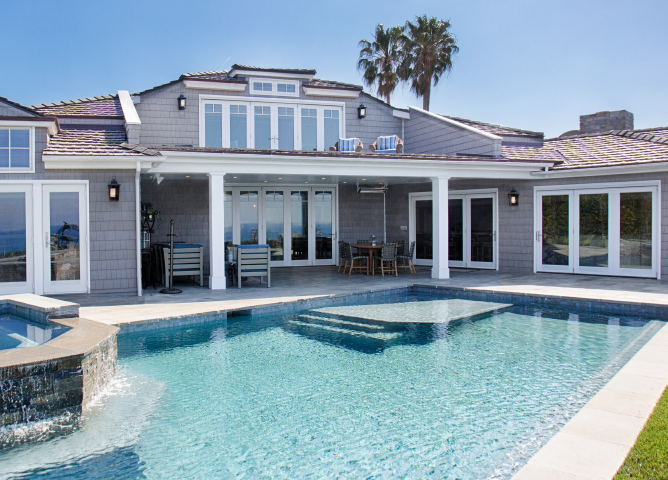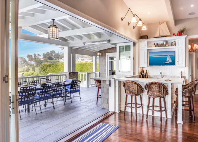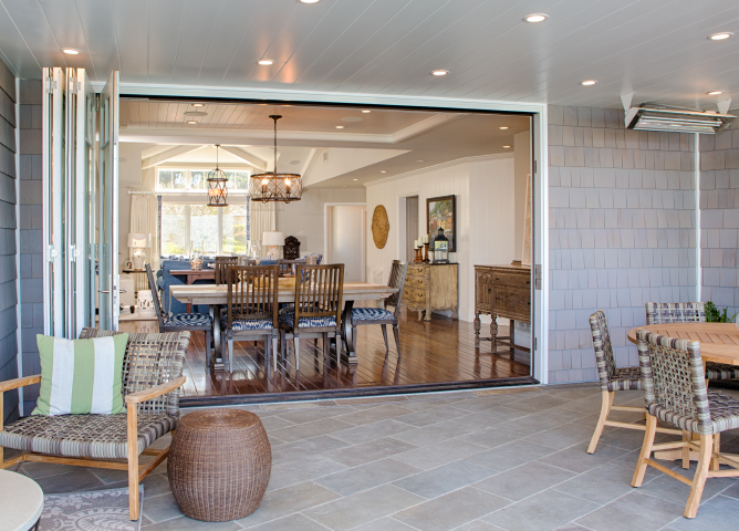 This home was designed to combine beachfront living with a client’s love of entertaining. Pritzkat & Johnson created a large, shaded area that makes the most of the site’s ocean view by adding a retractable wall in the kitchen that opens the living space up to an outdoor porch. The team mounted Infratech heaters to the porch’s ceiling to add comfort and promote indoor-outdoor flow, especially during parties. They specified Infratech because the heaters aesthetically and functionally blended into the space. The sleek design of the fixtures complemented the ceiling treatment, and the heat output was significant enough to warm guests on chilly winter days and cool summer evenings.