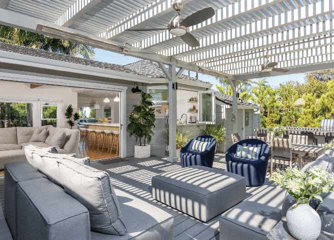 For this 2,100 square-foot residence, located within blocks of the beach in Encinitas, California, Daniel and Feldman were challenged by a limited structural footprint on a large lot. The team converted sizable front and back yards into usable, livable spaces that blur the line between indoor and outdoor areas. The client had expressed a wish to spend the majority of time with her family outside, so Daniel and Feldman created an outdoor living and dining area accessed by sliding doors and shaded by a slatted pergola-style ceiling treatment. Infratech SL-Series heaters add comfort on cool coastal evenings with a streamlined design that complements the ceiling treatment. An INF Input Regulator control offers easy functionality that aligned with the client’s budget. other way for specifying a heater because they are a leader in outdoor heating. Their designs and versatility allow us to select a product that will go very well with every design that we do, and fit every budget."