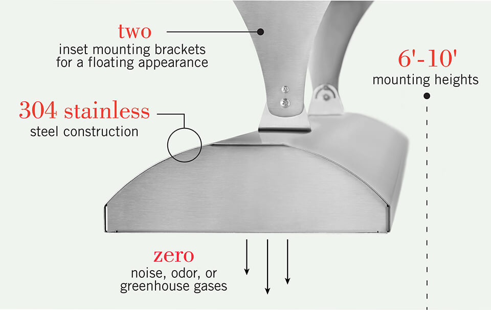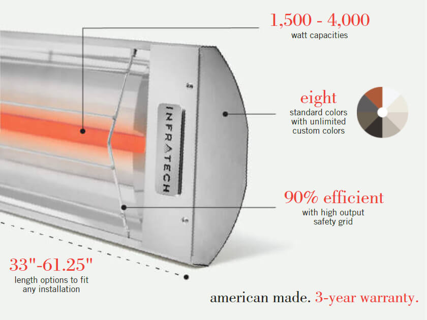 C-Series heaters are available in a range of colors, to coordinate with your interior or exterior environment. Choose from brushed stainless steel or eight standard color finish options.